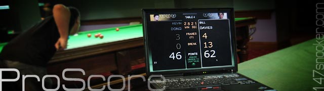 The popular Digital Snooker Scoreboard (DSS) has been replaced by a brand new professional product called "ProScore" also available from 147snooker.uk and 147snooker.net ProScore works with Windows PC (including Windows 2000, XP, 7, Vista, 10) and offers the best featured scoring system including Live Scoring in an easy-to-use package. Now you can bring this finest scoreboard to your home and clubs and be impressed by the amazing features at your finderfips. Don't take our words for it - download and try ProScore yourself and find out why it is the best investment for your facility.